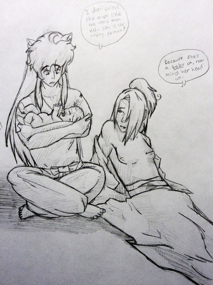 On the night of a new moon, Inuyasha can finally get some sleep knowing he has a strong, capable warrior to keep watch. It takes him a while to become fully comfortable with it - his pride is a big sticking point - but eventually he trusts Deidara to protect him on the nights when he's vulnerable. Meanwhile Deidara doesn't mind pulling an all-nighter once a month (especially since Inuyasha often chooses to stay up with him anyway).