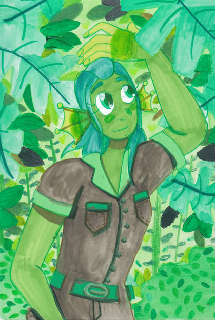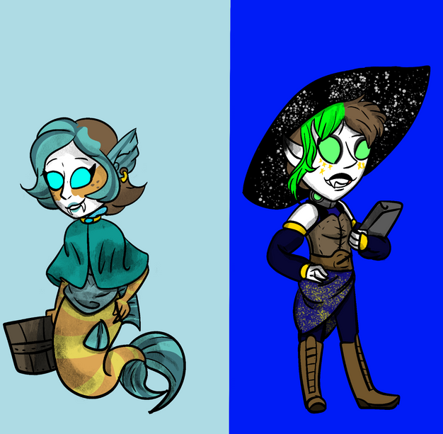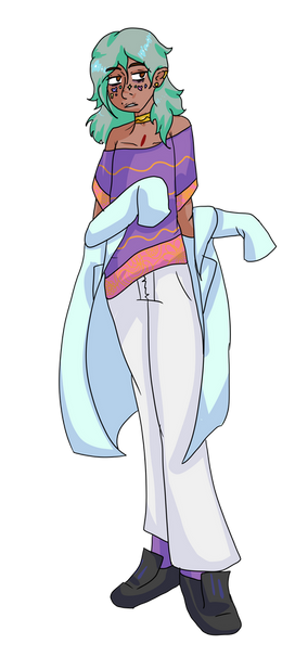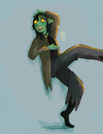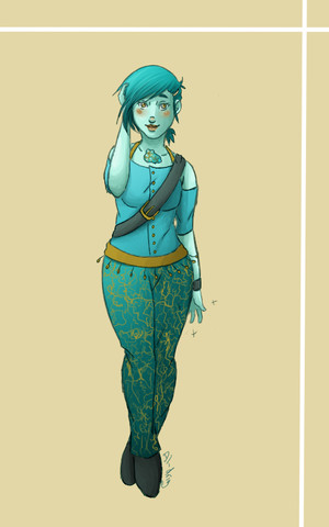 Anyway, Azri is amphibious, has silver shark-looking eyes, and is wearing angry frog leggings.