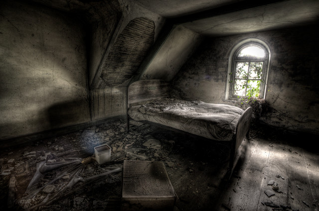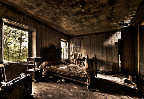 Does it make me weird if I want to plop down on that bed and make it my home, just the way it is in this photograph? I love run-down places.