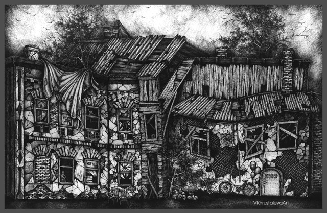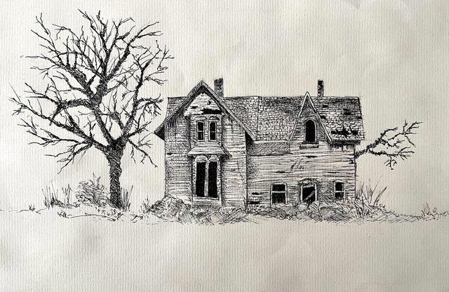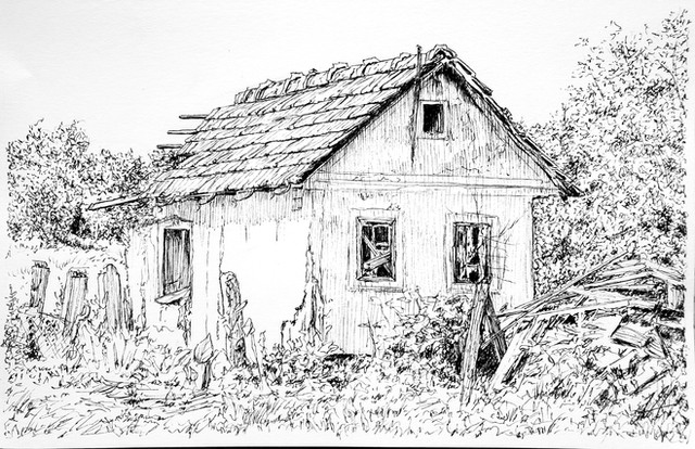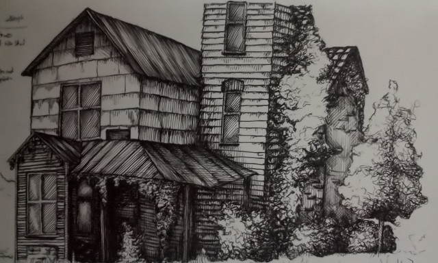 #2019 #blackandwhite #derelict #inkdrawing #landscape #traditional #victorian