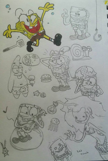 Vari schizzi di alcuni personaggi di SpongeBob.Non so cosa mi è girato... ma quando mi ritrovo un foglio in mano e una matita nessuno più mi può fermare.