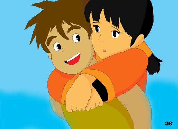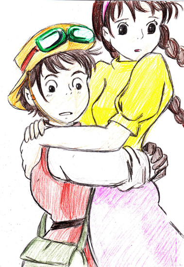 im alive! lol i havent uploaded anything in a looong time so i thought i try to draw a real cute scene from laputa castle in the sky i absolutly love this couple ive made alot of vids staring them [link] =] im also still getting the hang of photoshop =] so i hope you like itcomments and faves are highly apreciated =]