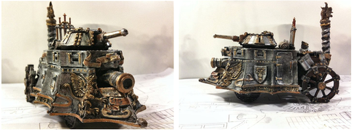 This is a sad indictment of how long some of my projects can go unfinished, even the smaller ones.I created this model when the first version of Warhammer 40,000 Apocalypse was out to represent the null field generator battlefield asset. This was a device that suppressed psychic powers in close proximity (24" I think). Made from various tanks parts with the pilot of a Sisters of battle penitent engine at the front, the concept behind the model is that it is a pariah hooked up to machinery that amplifies her gift to block psychic powers.