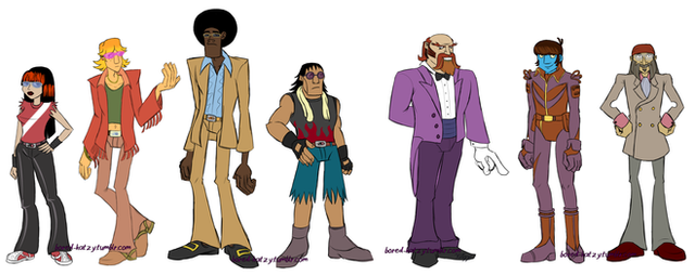 I like the sleevless jacket incorporated into the uniform of the top guy, that is very unique looking. He's probably my favorite. Can't go wrong with sneakers either.