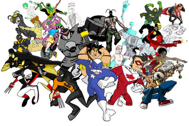 You definately wanted to work headphones into the teen son's design. I take it that that cowboy is supposed to be one of the supervillains? Now I am curious.