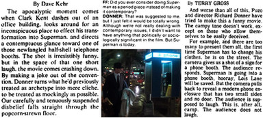 In the comics panels on the side the wealthy corrupt conservative elites say, "Pretty slick the way we continue to pile up profits while the rest of the country goes bankrupt, eh?" "Yeah, an' we owe it all to...[Luthor]" from Superman #5 (1940) "Luthor's Incense Menace" written by Jerry Siegel and art by Joe Shuster [reprinted in Superman Chronicles vol. 3 (2007)].
