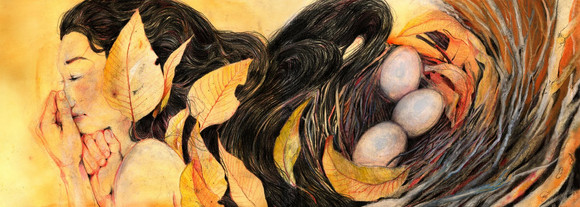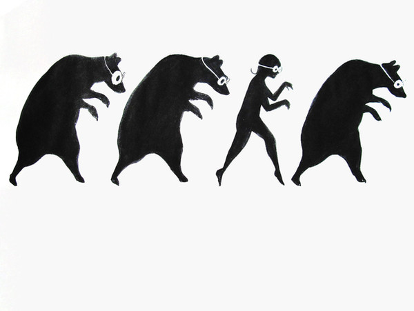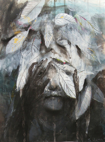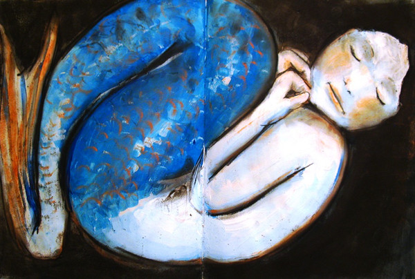 -"Explorer", graphite, acrylic, and white charcoal over an old drawing, 5" x 7".In my dreams I'm either running from something, cleaning/organizing something, or exploring somewhere.