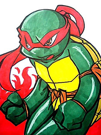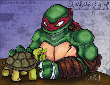 Ah, now about this pic: BAH. I don't like it. It's my first attempt at Raph, so I guess I shouldn't be TOO hard on myself, but buh, I don't like his eyes and his head is too small. FEH. Oh well. I hope you guys like it anyway