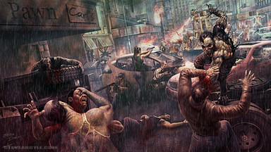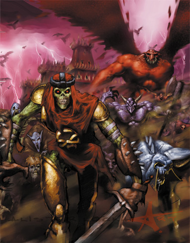I love the dude on the far right. He's all like, "Dude, take a Ritalin! You're scaring ME, and I'm undead!" ^__^ Great piece, Steve.