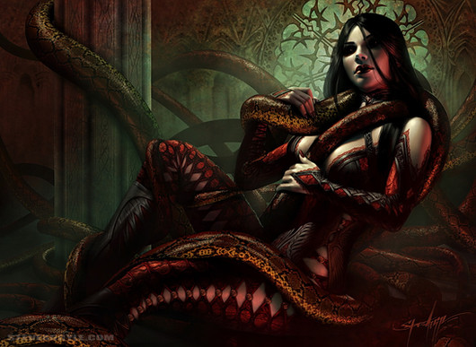 Liliana Vess. Gorgeous supreme sorceress of the black arts.Concubine of death and weaver of destruction, here we see just how easy it is for her to snuff out a life with her dark craft.