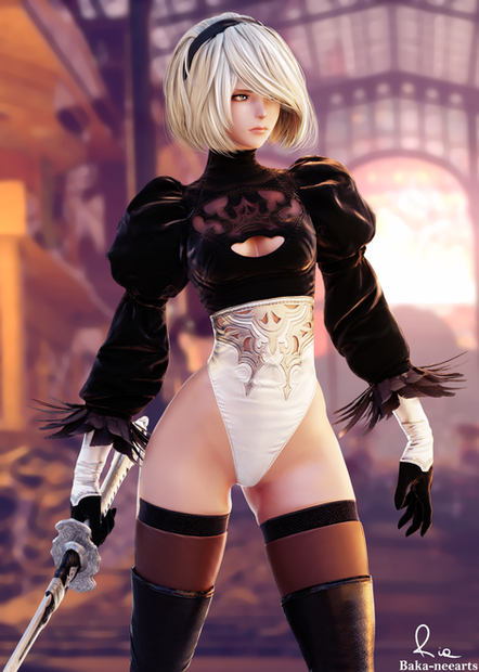 #2b #3d #3dcg #3dx #blonde #boots #curvy #cute #female #girl #nier #pinup #sexy #sfw #solo #standing #stockings #woman #thick #thicc #shorthair #nier_automata #nierautomata #yorha2b #yorha_type_2b