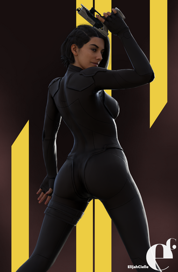 #3d #ass #bodysuit #booty #butt #curvy #cyberpunk #pinup #redhead #sexy #skintight #solo #standing #triss #thicc #voluptuous #trissmerigold #triss_merigold