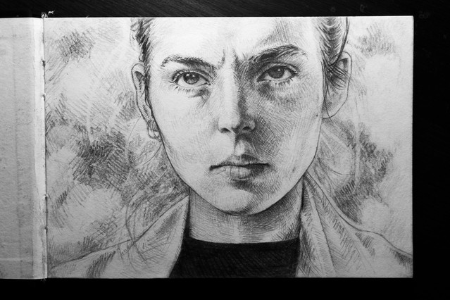 I’m not partial to celebrity portraits but sometimes I see someone and really want to draw them. I am a huge fan of the actress Ruth Wilson. All of her work moves me on a deep level so I felt like I wanted to pay tribute to her in a drawing. I think I mostly captured the likeness although, if I’m honest, I would have liked to nail it a tiny bit more but I’m satisfied with as far as I got with it. Click to see entire image.Staedtler graphite pencils, sketchbook.