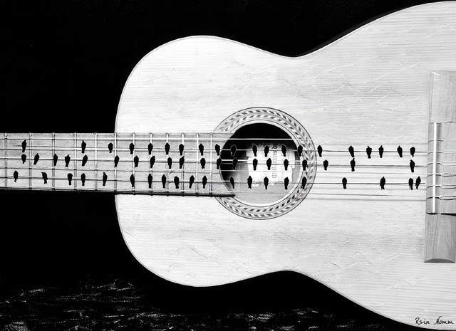 Simplistic is the way to go, in my mind. Add conceptual elements, and I'm completely in love. I love everything about this. It's so simple, but the different texturesΒ in the guitar and the boat add a depth that is subtle, but powerful. It reminds me of the journey we all experience when listening to music, just floating along inside our memories, our emotions, and our thoughts. Just brilliant, in my opinion!