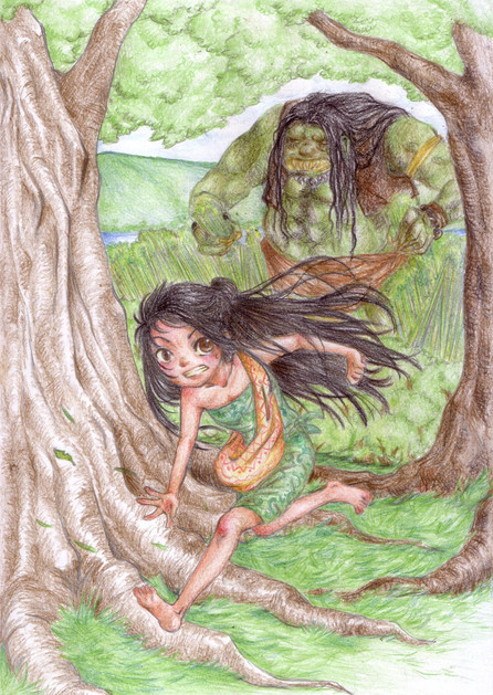 She ran again but the giant managed to get close. this time she grabbed a handful of chilli and she trew to the giant. It grew to become sharp