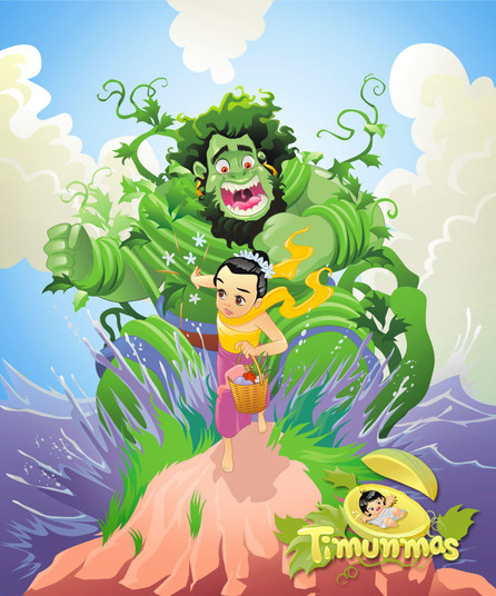 forest. When the giant knew about the escape, He was very angry. He then destroyed the farmers house and ran chasing for Timun Mas.