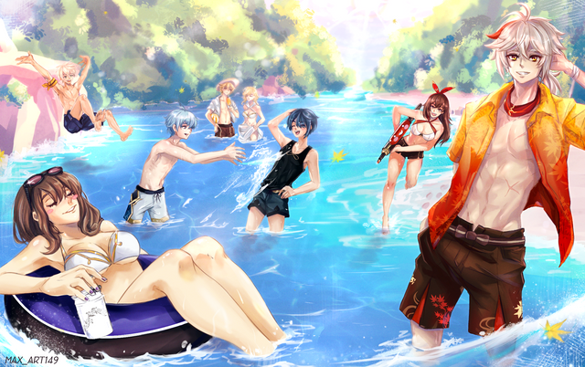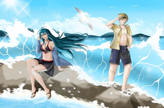 #anime #beach #clouds #contest #digital #drawing #fun #heat #hot #island #playing #scene #shirtless #sky #water #floatsu #animedrawing #animegirl #animestyle #beachscene #contestentry #illustration