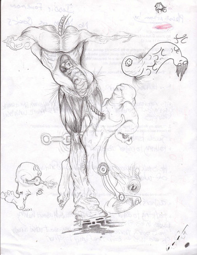 The girl with a cow head and no arms or legs has nothing to do with the anatomy study.I think I will draw a bigger version of something like the anatomy guy and color it.