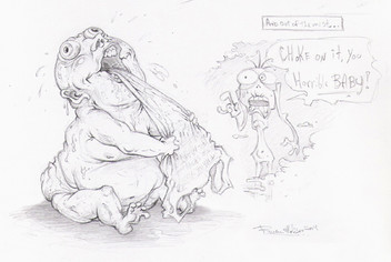 This made me think symbolicaly, although you prob didnt mean for the pic to be that way. I got from it that grown folks always takin there grown folks shit and throwin it up around babys, taking stuff out on them. Hrmm.....