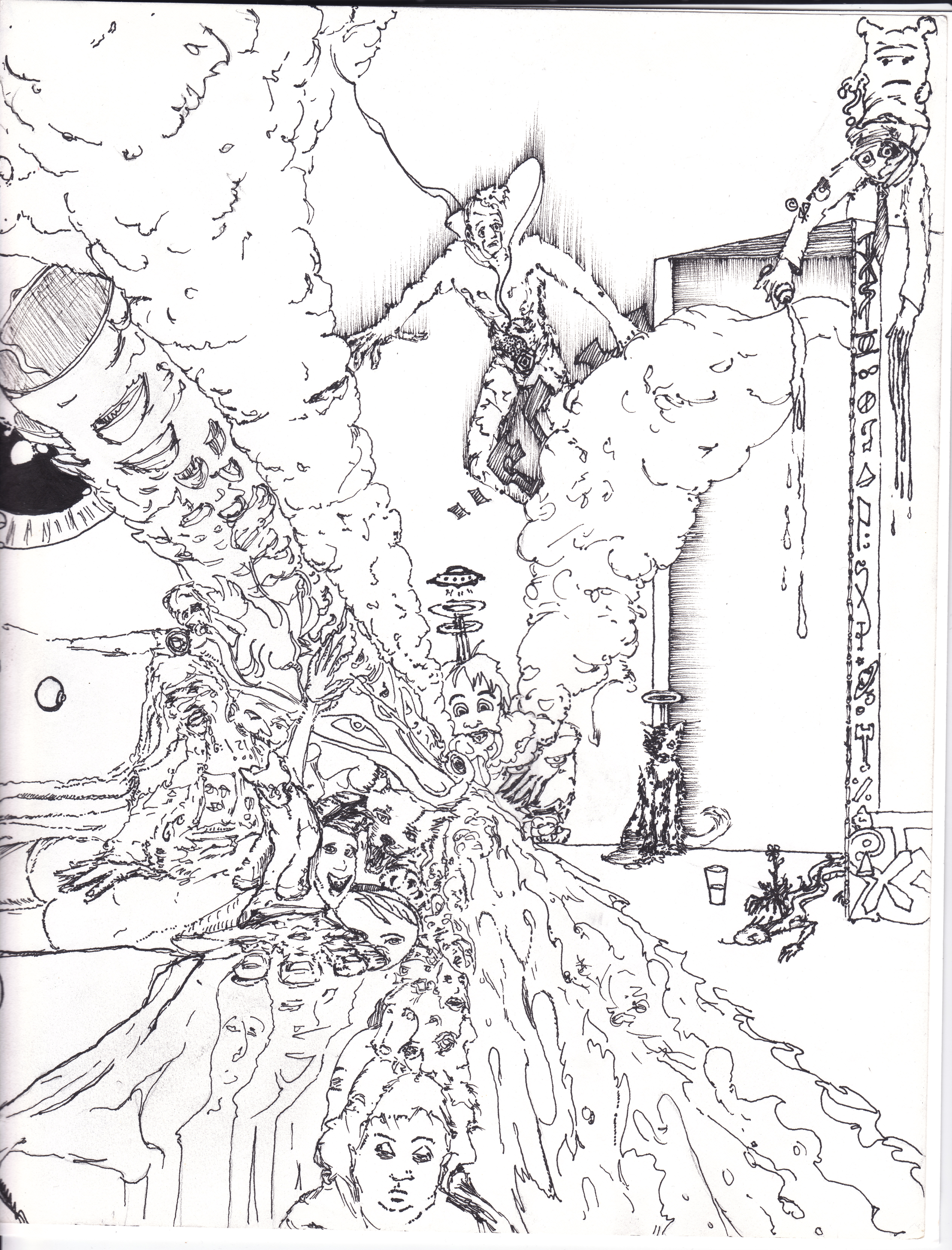 nice doodle, I just wished I had the same drawing skills as you have, whatever, why don't you work pieces more out? spend some time on adding high detail on it and then color it, but please not with those feltpens again, the colors don't come out that good, uhm, I don't know better way than with drawing it by pc, I did paint my recent drawing with photoshop 6, if you don't have you can try colored ink or something, just something, which will look fine, vibrant colors and everything, damn it, you got the skill man, don't waste it with doodling your time away! and no, I'm not your mother, but you should do it though