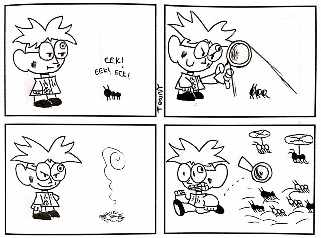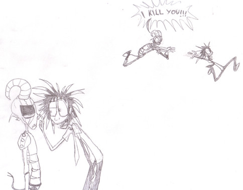 One of the mascot characters I sent in for Toonies and possibly his little brother.Drawn on cardboard of some kind.
