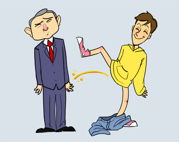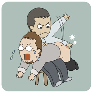 Hee hee! The one sitting looks very angry, and for a good reason...