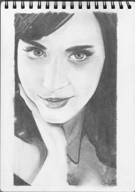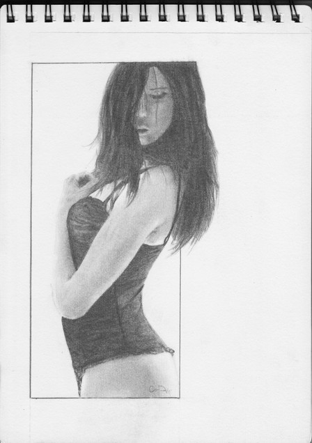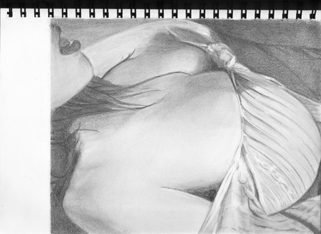 Charcoal on a3 of ulma therman only i made some subtle body changes and face also... trying to give a more rounded figure and younger face... i dont know if i achieved it the way i set out to..I also wanted to bring the picture forward to give the impression of being closerAll in willow charcoal.