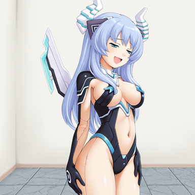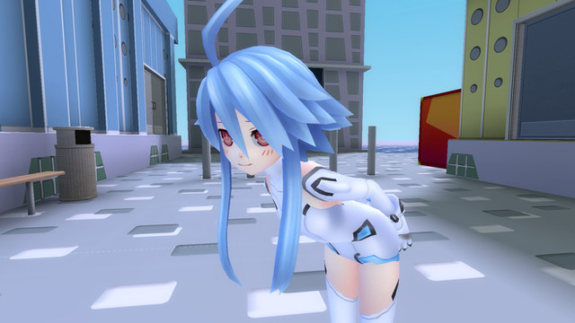 Yay I started watching this anime! It's based of a game. She's so cute in this form. In her CPU form she's so beautiful, though. ^-^Edit--- the legs are barf ew
