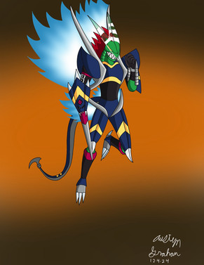 I always found it weird at the adventure, two kids, Digimon partners, and ever Digivolv on their own be on Campion so I decide to design, but I think it’s the man with Digivolv further, though I do feel like at the 02 digimon specifically would incorporate aspects of the digital armored devolution’s so that’s what I did. I incorporate aspects of Raidramon and Flamedramon in the design while still making it feel like in evolution of Ex VeemonLevel: Ultimate/ Perfect