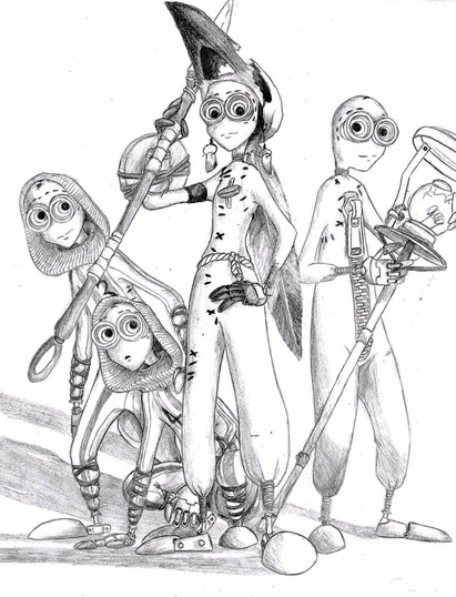 I finally got her to watch 9 a couple days ago (cuz she kept saying I was weird & it was probably really stupid & I was dying to prove her wrong)...& she not just liked it...she drew me a pic of her favorite characters...she never does that 0_0...so now I have a pic of 2 & 6 hanging up next to my computer & a mom that keeps smiling at me everytime I draw another stitchpunk....