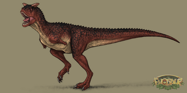 Here it is again for a fourth dinosaur that I made in Evosaur, Carnotaurus, a theropod dinosaur that lived in the Late Cretaceous Period.Carnotaurus is a lightly built, bipedal theropod dinosaur with 2 thick horns that are above its eye, and the horns are used to ram anyone who stand in its way as a shocking absorber. It has many small spikes on top of the body, two tiny arms, some long large legs, and a long tail. Carnotaurus is classified as an Abelisauridae, a family of large theropods who are dominant predators in the Late Cretaceous.