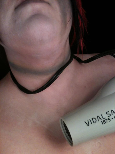 wundervoll wie tief sich der Riemen in die zarte Kehle grΓ€bt...Ein Kabelbinder wΓΌrde sicher auch gut aussehen...