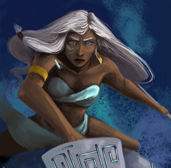 THERE SHOLD A BIG BLUE SHARK IN TEH BACKGROUND OMNNOMINOMONIOMOINOINM ON HER