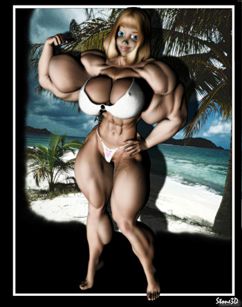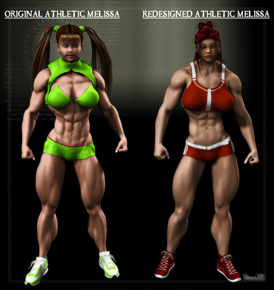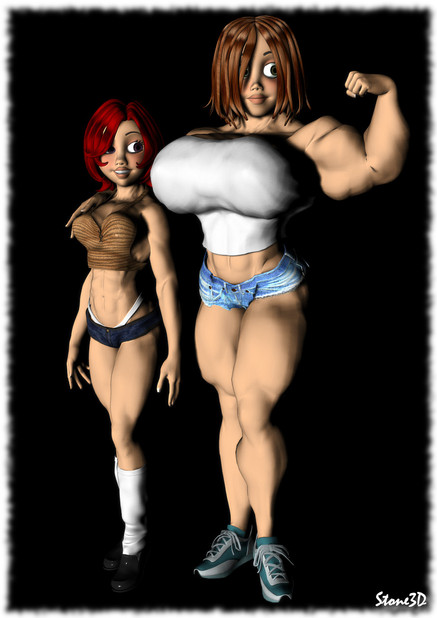 Decided to include both versions of Melissa in this Workout pic, because you wont be seeing much of the smaller version of her after Birth of a Teenage MuscleGoddess, except for maybe in the Naomi and Jenny comic strip, but even there she’ll eventually become the MuscleGoddess version too, for those that don’t know, Melissa is Jenny’s younger sister, just how did she get so big, you’ll have to read The Birth of a Teenage MuscleGoddess comic to find out...