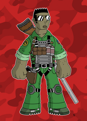 Joshua, or Josh, developed incredible stamina during his childhood by constantly running away from bullies. He participated in 1960 olympics and earned multiple athletic medals.Being bored with his life, he decided to put his superhuman stamina in good use in the US army and is now the Corporal of the W.A.N.K. unit.