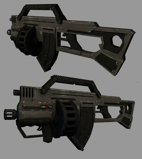 With a growing number of operations and battles taking place in urban and industrial environments, the UTC realized that their ground infantry units were in dire need of a more effective, balanced weapon system for indoor combat. UTC soldiers fighting in the close confines of urban structures and industrial installations needed a highly compact, reliable and maneuverable weapon, but it needed the power to blast through light walls and take down the agile alien forces they were faced with. The result was the development of the Sub-Assault Rifle, the most well known of which is the S-AR 12. These weapons have the power of an assault rifle, usually using rifle ammunition such as 5.56mm rounds, and the maneuverability of a compact sub-machine gun. Accuracy was not an issue due to the extremely short range of most of the encounters in urban combat.Made By Runestorm