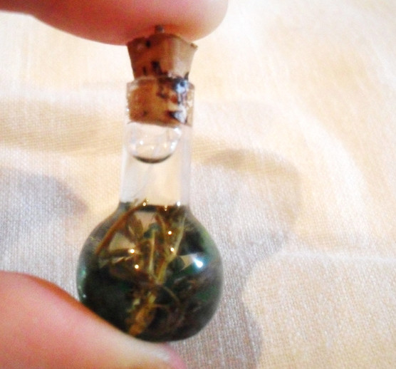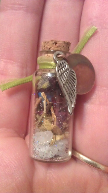 Vial filled with Heather flowers.-SOLD-