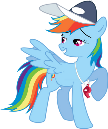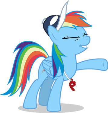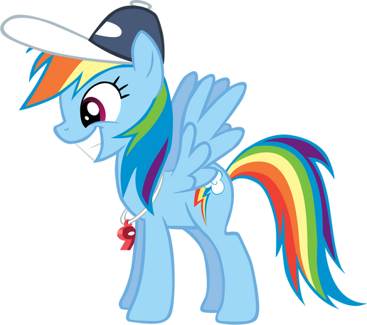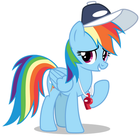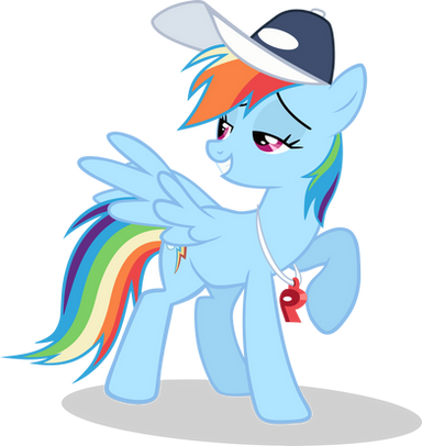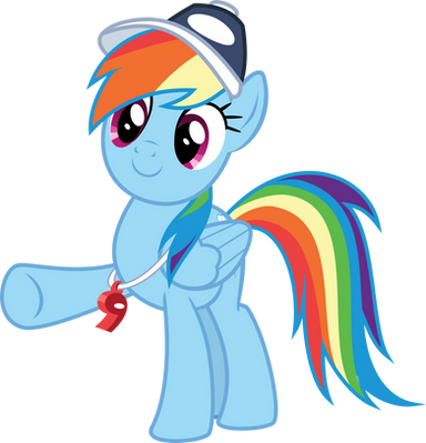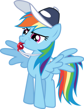 Rainbow Dash striking a pose, from Season 2 Episode 7 "Maybe The Best Pet Win".Complete with the whistle and the cap.