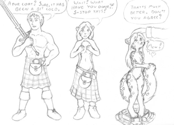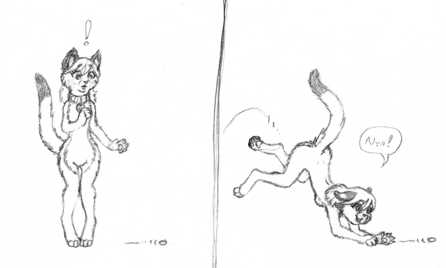 The side effects of prolonged cell phone exposure... I guess.... Actually, I just needed something to show scale, but anyway....This drawing was inspired by . In the last panel of an EGS strip there was a tiny photograph that I couldn't really make out. The catgirl from that photo was the reason i started this drawing.