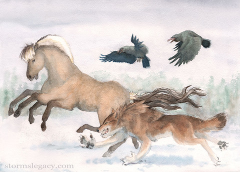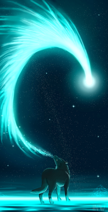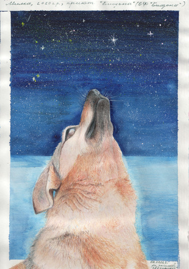 The coyote plays the part of storyteller in my creation world, it is both my muse and sometimes represents myself. I have mild synesthesia which is triggered by certain kinds of music or words, which I "see" as splashes of color. So I painted a song. (It's so long and narrow, you need to click it to see the whole thing!)