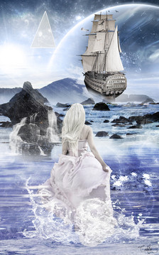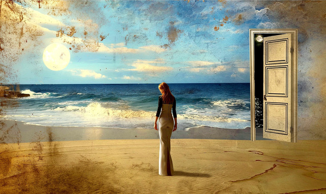 #atmospheric #conceptual #contemplation #digitalart #distance #dreamlike #fantasy #moon #night #ocean #photomanipulation #quiet #surreal #surrealart #transition #window