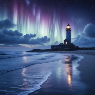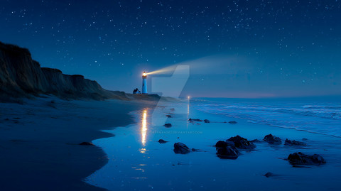 #aurora #digitalart #direction #guidance #horizon #journey #landscape #lighthouse #navigation #night #orientation #path #sea #stillness #threshold #waypoint