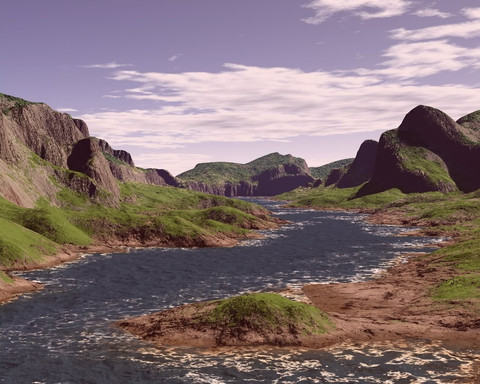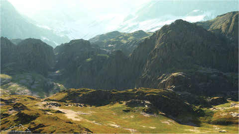 Even from the beginning this man created an awesome scene .. I'm tellin' ya, he was born to use this program Very good texture work in this one .. are those purple spots in the hills? lol .. Good job mate