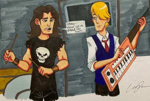 Lol I tried drawing him in his Rory Storms stage costume, but I guess I didn't catch it enough. Plus I saw in a colored photo that the suit is red, but by the time I found out I already colored it gray.
