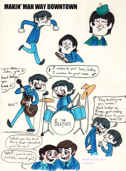 Back to the Beatles. Love your cartoony style, wit the big eyes and matching leathers. Love how you got Ring's prematurely-aged gray streak in his hair.Β