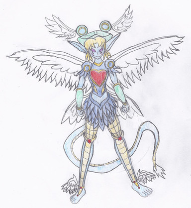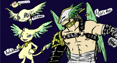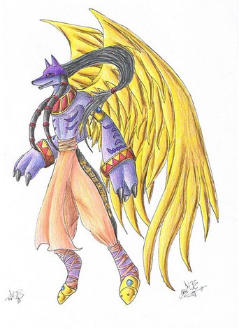 Gabemon use to be an archangel-type digimon like his brothers, but s**t happened and now he's not.