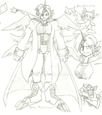 Doodles of my Supernatural/Digimon crossover AU.I designed Michamon, the brother to Lucemon (an actual digimon), and now they have their third archangel brother: Raphamon. Unlike his two brothers, Raphamon can send blue lightening bolts throughout the wings on his back, creating an enormous pair of vibrant blue wings. This is moreover done to intimidate opponents... Or stand out at parties.