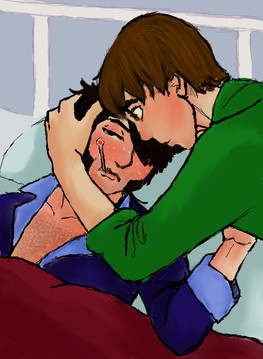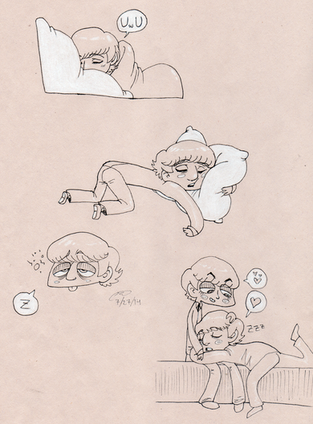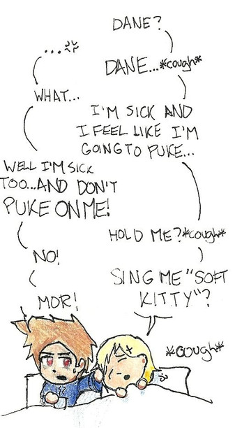 I've been sick this whole week with a cold, and whenever I get sick I tend to take it out on the characters I draw.The two top doodles are Ringo (plus doctor!John and nurse!George). The lower left doodle is of Dean and sick!human!Castiel. The lower right doodle is of Vona and sick!Jon.