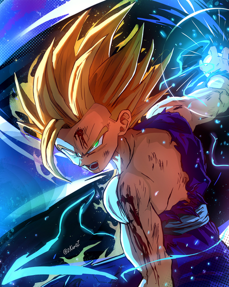 Y'know I think it should be a golden rule at this point with Gohan that if you see lightning and he gives you this look that it's time to run.Haven't drawn Dragon Ball stuff in (literal) years, but Gohan has always been without a doubt my favorite. Super Hero brought back my love for this fella so I just had to draw him. I might end up drawing the Gammas at some point too, I love them both so much.