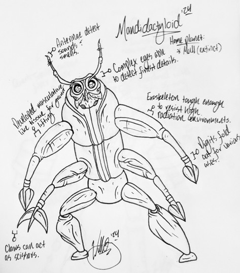 Alien species calling themselves the Diyari-di, also known as, unsurprisingly, "the Spiders". Originally biologically engineered servants created by their extinct masters, known as the Titans, the diyari-di now live on and maintain the tree-like space habitats originally designed and grown by their creators.They are capable of surviving temporarily in the vacuum of space and when doing so, communicate via flashes of light from their bioluminescent organs on the tips of the stalks.(reworking of the diyaridi aliens from an earlier picture)